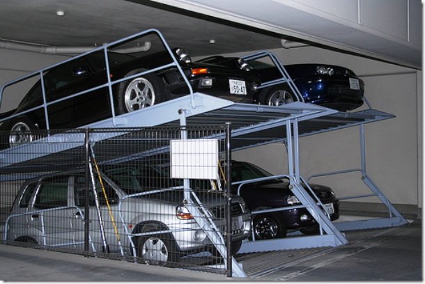 Несмотря на то, что Япония является несколько обособленной страной, она является домом для 126 миллионов человек. Соответственно, экономия пространства является одной из самых важных проблем, с которыми приходится сталкиваться местным жителям и парковка автомобилей не является исключением. Если вы едете в торговый центр, то вы, скорее всего, увидите парковку, похожую на ту, что на этой фотографии.