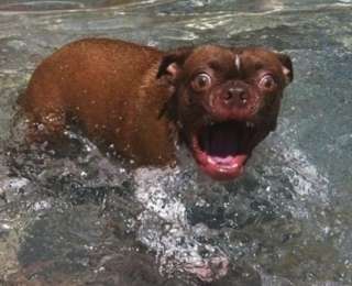 Собака, которая просто не может, больше ни минуты выдержать в воде.