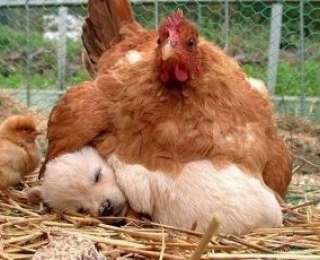На этот раз у мамы-курицы вылупился кто-то побольше цыпленка. Ничего, места хватит всем.