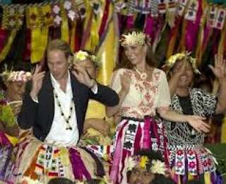 Как пишет WDay.ru, принц Уильям и его супруга Кейт Миддлтон совершили дипломатический визит в Полинезию. Во время посещения островов Тувалу их не только встретили с почестями, осыпали цветами и нарядили в национальные костюмы, но и усадили на троны. Украшенные цветами, принарядившиеся полинезийцы устроили карнавальное шествие, пронеся принца Уильяма и Кейт Миддлтон на тронах от трапа самолета до дворца племени, где был устроен приветственный праздник Фалекапуле.