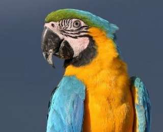 Ара летит вниз, чтобы приземлиться на террасе дома в Каракасе, Венесуэла. Легенда гласит, что сине-желтый ара в Каракасе был заведен в 1970-х годах итальянским иммигрантом Витторио Поджи, который выкормил больного попугая ара и обучил его летать за своим мотоциклом, когда он ездил по городу.