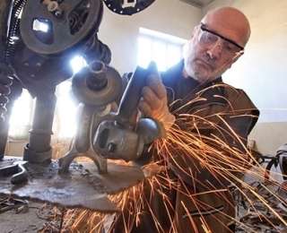 Совсем недавно получил звание заслуженного художника, правда, мастерской не дали. А вообще-то, самое главное — здоровье. Здесь ведь много пыли, в основном металлической, стружки, опилки — металл же надо очищать…