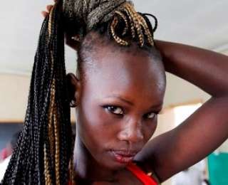 Модель готовится к участию в конкурсе красоты Мисс Коха в трущобах Корогочо в Найроби, 6 декабря 2014 года.