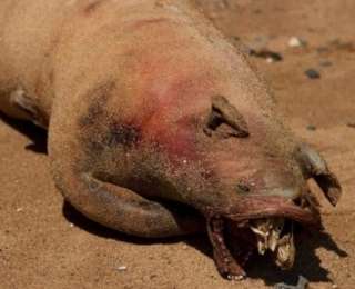 Другая любопытная находка, немного всколыхнувшая интернет — это монстр из Ист-Ривер, найденный на Манхэттене под Бруклинским мостом. Его сфотографировал в 2012-м году пешеход и выложил на нью-йоркском сайте Gothamist. В раздутой туше не удавалось опознать ни один из известных видов.