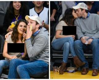 Эштон Кутчер и Мила Кунис в пятницу в Staples Center во время баскетбольного матча Лос-Анджелес Лейкерс против Оклахома-Сити Тандер.