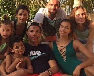 «Так хорошо отдохнуть и повеселиться в выходной день!» — написал Роналду, выложив фото на котором он изображен вместе с Ириной, одетой в эффектный зеленый купальник, сыном Криштиану и своими родственниками. Судя по тому, что лица Роналду и Шейк раскрашены, повеселились они действительно на славу.
