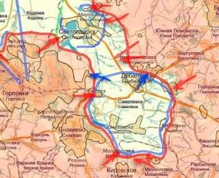 На севере кармана находится город Светлодарск, очень хорошо укреплённый силами киевского режима. Поэтому схлопывание мешка и превращение его в котёл происходит южнее горловины, прямо на линии Углегорск — Дебальцево.
