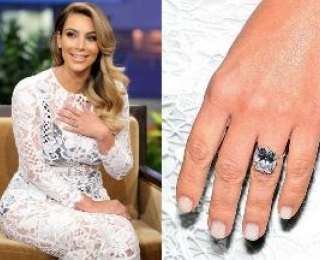 Канье Уэст подарил Ким Кардашьян на помолвку кольцо с бриллиантом в 15 карат от Lorraine Schwartz.