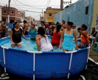 В столице Перу, городе Лима жаркая погода устанавливается в феврале, в разгар лета в южном полушарии.Жители бедных кварталах нашли способ, как в такую погоду спасаться от нестерпимой жары. Они охлаждаются в пластиковых бассейнах, которые ставятся последи дворов и даже улиц. Порой целые кварталы вскладчину скидываются, чтобы купить бассейн, который в местных универмагах можно купить чуть более, чем за 100 долларов.
