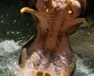 Не верите? Судите сами: хищники нападать на бегемота опасаются потому, что уж больно он ужасен в гневе, да и вооружен отменно. Несмотря на то что бегемот — животное травоядное, зубы у него, пожалуй, самые страшные, какие только можно представить, особенно нижние клыки. Они растут всю жизнь и достигают длины свыше полуметра. В припадке ярости бегемот запросто перекусывает пополам гигантского нильского крокодила.