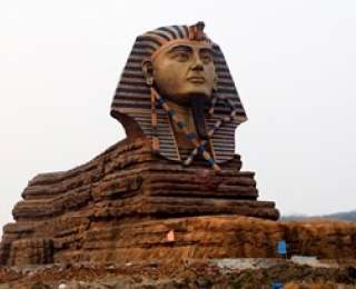Мало кто знает, но в Китае имеется свой сфинкс. Причем он такого же гигантского размера, что и оригинальный в Египте, на которого китайский похож как две капли воды. Этот сфинкс является частью недостроенного тематического парка в Чучжоу, провинция Аньхой, Китай.