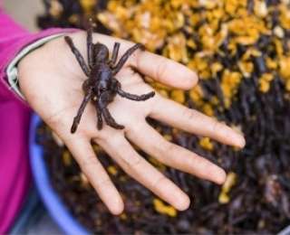 Если и есть что-то более ужасное, чем гигантский паук, так это этот самый гигантский паук (пусть мертвый и жареный) в собственном рту. Тарантулы известны прежде всего как мохнатые звери, которые с легкостью убивают птиц и подкарауливают ящериц в засаде. Не говоря уже о тех страхах, что он вызывает на всю жизнь. При этом в Камбодже его считают вполне привлекательной закуской. Интересный деликатес (происхождение которого остается под покровом тайны) – жареный тарантул. Размером он с человеческую ладонь и может быть приготовлен с добавлением самых разных ингредиентов – так сказать, чтобы раскрыть всю полноту вкуса.