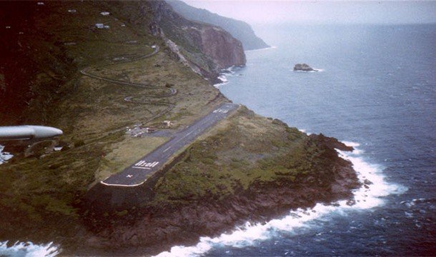 Эта взлётно-посадочная полоса считается одной из самых страшных в мире, так как самолёты буквально слетают с утёса, пролетая над обрывом.