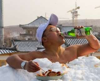 Житель китайской провинции Цзилинь Жин Сонгао установил рекорд по самому продолжительному пребыванию в снегу без одежды: 46 минут и семь секунд. За это время он успел выпить бутылку пива и закусить.