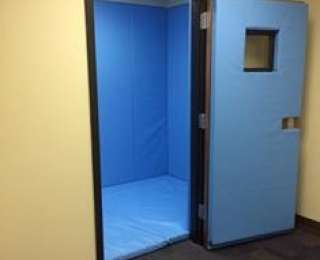 Эта комната расположена в обычной американской школе и предназначена для "успокоения буйных школьников". Больше всего эта комнатка напоминает мне комнату для психически нездоровых людей, которых помещают в подобные комнаты, чтобы они не могли причинить вред себе и кому-либо еще.