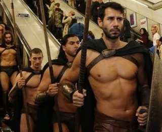 Группа парней атлетического телосложения, вдохновленных акцией «в метро без штанов» (The No Pants Subway Ride), в образе древних воинов прокатилась в метро Лондона, вызвав тем самым всеобщий восторг у представительниц слабого пола. Пост для наших прекрасных посетительниц.