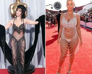 В конце 1980-х амбассадором «голых» платьев стала главная на тот момент королева эпатажа — певица Шер. Громких выходов было два: первый — в 1988 году, когда она появилась на «Оскаре» в образе Шамаханской царицы, и второй три года спустя.