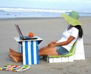 А вот с местом как раз может быть проблема. Если, конечно, у вас нету с собой специального набора фрилансера – комплекта с названием Flat-pack Cardboard Beach Office. Речь идет о конструкторе, позволяющем в одну минуту собрать из картонных деталей рабочий стол и кресло.