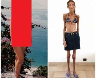 Валерии Левитиной — 39 лет, она живет в Монако и она самая худая женщина в мире. Валерия весит всего 25 кг, что равняется весу четырех камней. Левитина с 20 лет страдает жесточайшей анорексией после того, как села на строгие диеты в попытках сбросить вес. Сейчас Валерия отчаянно пытается поправиться и так же отчаянно пытается доказать восторгающимся ее фигурой девочкам: тут нечему завидовать и нечем восторгаться — этого нужно избегать всеми силами. Валерия — выходец из России. В детстве она была пышечкой и ужасно комплексовала. Уехав из страны, девушка участвовала в конкурсах красоты и стремилась стать стройной. Результат оказался плачевным. Сейчас Валерия практически не различает вкус продуктов, а белки, жиры и углеводы принимает строго по схеме. Чтобы не падать в обморок из-за низкого давления, она вынуждена пить крепкий кофе литрами. Валерия живет в Монако, чтобы поправить здоровье благодаря теплому климату. Единственный ее доход — это пособие по безработице. Мать называет Валерию мумией или живым трупом — и она, увы, недалека от истины. Женщина рассказывает, что ей каждый день приходит куча емейлов от девочек, которые хотят быть на нее похожей. Именно поэтому Валерия фотографируется и выставляет свое тело напоказ — чтобы навсегда отбить у них охоту и восторг. Осторожно, фото не самого приятного содержания!!! Валерия с подругой Татьяной Пичугиной Валерия в 7 лет в Гаграх Валерии 14 лет Валерии 19 лет Валерии — 23 23-летняя Валерия на конкурсе красоты в Нью-Йорке