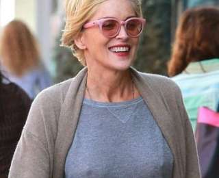 57-летняя актриса Шэрон Стоун, одетая в тонкую серую футболку, сквозь которую отчетливо были видны контуры ее сосков, и рваные мешковатые джинсы, была снята папарацци во время похода на маникюр и педикюр.