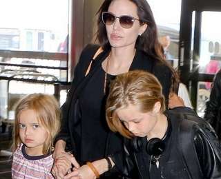 Анджелина Джоли и Бред Питт с детьми вчера в аэропорту Лос-Анджелеса.