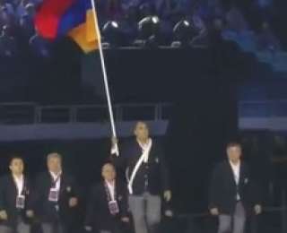 Однако, несмотря на свист, возглавляющий делегацию генеральный секретарь Национального олимпийского комитета Армении Грачья Ростомян одной рукой поднял флаг республики высоко над головой и гордо пронес его мимо пышущих злобой трибун.