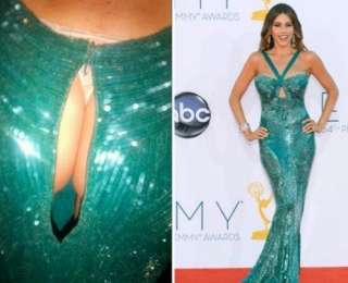 Популярная голливудская актриса колумбийского происхождения София Вергара опозорилась на красной дорожке очередной церемонии вручения премии Emmy Awards. Слишком узкое платье звезды разошлось на аппетитной попе колумбийской звезды в самый неподходящий момент - прямо под объективами фотокамер.