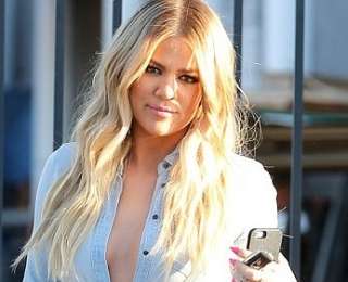 Последнее время Хлои Кардашьян очень сильно похудела. Именно поэтому она может позволить теперь носить сорочку на голое тело и повязывать ее так, чтобы взору окружающих предстала ее грудь.