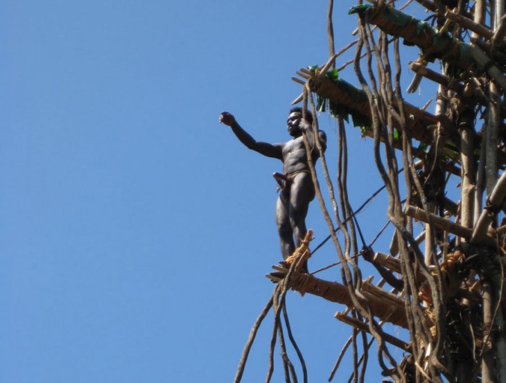 4. В селении Бунлап жители прыгают головой вниз с огромной деревянной конструкции, обвязав ноги лозой, чтобы получить благословение богов.