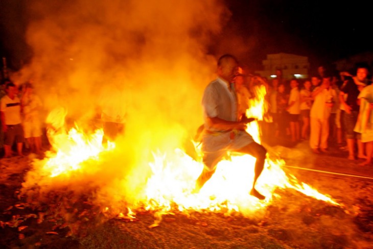 7. Во время Даосского Фестиваля Девяти Богов Императора люди ходят босиком по горящим углям с целью разогнать от себя злых духов.