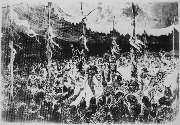 2. Во время обрядов в честь духов Земли коренные американцы протыкают себе кожу на груди специальными прутьями, привязанными к столбу, символизирующему Древо Жизни.