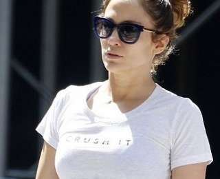 Дженнифер Лопес выйдя на прогулку выбрала обтягивающие легенсы, которые в полной красе показали нам все недостатки ее фигуры.