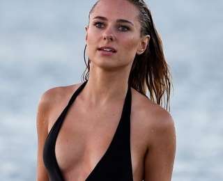 Девушки Бонда: 25-летняя Кимберли Гарнир (Kimberley Garner) продемонстрировала свое безупречное девичье тело, подтянутые ягодицы, задорные упругие груди в супер-сексуальном черном с вырезом купальнике, когда она наслаждалась отдыхом в Сен-Тропе, Франция.