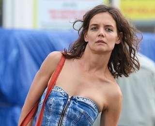 Не понятно о чем думала Кэти Холмс надевая такой короткий сарафан, если ей потом приходилось постоянно его одергивать, чтобы лишний раз не светить свою попу. Хотя в реальности все не так страшно, ведь это все был лишь образ для нового фильма.