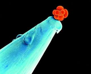 Это человеческий эмбрион в возрасте трех дней. В это время он состоит всего из 16 клеток и умещается на кончике иглы.