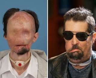 Пациент Даллас Винс в декабре 2010 года, Даллас, штат Техас. Из-за десятков пересадок кожи и переливаний крови иммунная система Винса была настолько ослаблена, что шансы на то, что организм отвергнет донорское лицо, оценивались в 80%. Но всё же врачи решили пойти на риск, который вскоре оправдался.