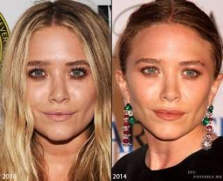Когда сестры появились вместе на премии World of Children Awards 2014, они перестали быть похожи. Точнее, Мэри-Кейт сильно изменилась: изменилась форма носа (кончик носа стал уже и короче, понизилась проекция спинки носа), увеличился объем в области скул и появилось ярко-выраженное сужение глазной щели. Все это косвенно указывает на вероятность эндоскопии верхней зоны лица с использованием внутриротовых доступов. Можно констатировать и увеличение объема губ.