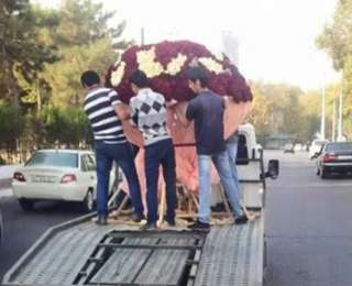 Житель Ташкента подарил своей девушке невероятно роскошный букет, состоящий из роз. Точное количество цветов в букете неизвестно, кто-то говорит, что их была 1000, а некоторые поговаривают и о миллионе. Так или иначе, но для доставки огромного букета пришлось соорудить специальную деревянную подставку, которую погрузили на эвакуатор. Снимки стали предметом бурного обсуждения, а кто-то из комментаторов даже отметил, что его цена составляет 10 миллионов сум (более 2000 долларов).