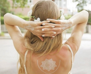 Полюбившиеся многим татуировки хной сменяют белые кружевные тату. И хотя состав, которым их делают, называют белой хной, на самом деле это обычная гипоаллергенная акриловая краска, в которую для устойчивости добавляют такой же гипоаллергенный клей. И если роспись хной держится на теле около трех недель, то белые татуировки выдержат всего 1-2 дня. Однако сделав себе такой рисунок, например, на свадьбу, можно не бояться, что случайно смажете его или что он смоется от нежданного дождя. Краска достаточно устойчивая, но, в отличие от настоящей хны, не проникает в поры кожи, а остается лишь на поверхности, поэтому и не обладает такой устойчивостью. Но зато смотрится невероятно красиво!