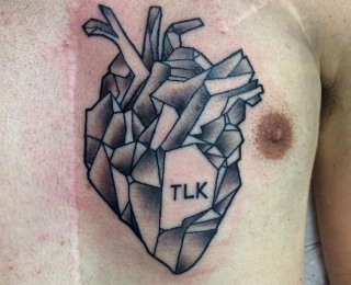MoTioNz объяснил, что в 14 лет ему была сделана пересадка сердца, и эту татуировку он сделал в честь донора, чьи инициалы она включил в тату