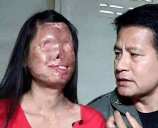 На заводе, где работала девушка вместе со своим братом, произошла авария. В результате на нее разлилась кислота и она получила множество ожогов, которые изуродовали ее. Она осталась слепой. "Я чувствовала себя несчастной, озлобленной на мир. Но мне повезло, у меня все еще есть муж", - говорит она.