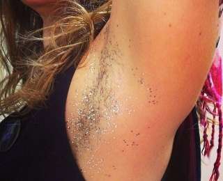 Ещё немного о феминизме головного мозга. Недавно мы писали вам о таком тренде среди мужчин, как блёстки в бороде, но ярые феминистки решили использовать это модное безумие против сексистских притеснений. Ведь у женщин нет бороды, а мазать бороду краской с блестками им как-то не очень, поэтому они решили создать новый безумный тренд. Встречайте - блёстки на подмышках..