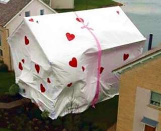 2.Очень большой и оригинальный подарок сделал американец Джейсин Боланд своей невесте. Он купил двухэтажный дом и упаковал его в подарочную бумагу, перевязав красным бантом.