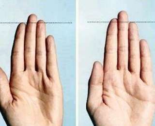 Если указательный палец длиннее безымянного, это может означать, что человек получал более высокие дозы тестостерона, когда он был в утробе матери. В исследованиях, проведенных в Королевском колледже в Великобритании, указано, что влияние гормонов на ребенка в утробе матери может менять будущее поведение человека.
