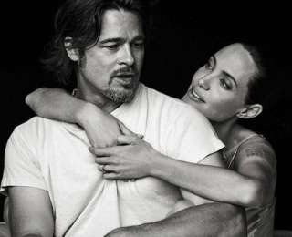 Кроме Джоли, в объектив фотографа Питера Линдберга попал также муж Анджелины – Брэд Питт.