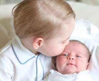Поцелуй принца Джорджа и его новорожденной сестры Шарлотты.