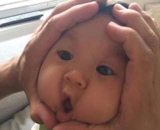 Японцы сжимают лица детей, обхватывая их руками, тем самым заставляя их "дуть щёки"
