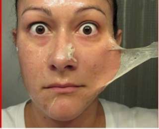 Когда маска высохнет, начинаем потихоньку снимать ее с лица. Вас поразить количество «грязи», которая появится на маске. Но теперь вам не будут страшны черные точки на лице.