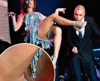 24-летняя звезда, исполнявшая композицию под названием «Цунами», очень впечатлила зрителей ближних рядов откровенным мини. Самые проницательные зрители обнаружили на артистке практически прозрачное и обтягивающее боди, под которым нижнее белье вовсе не просматривалось.