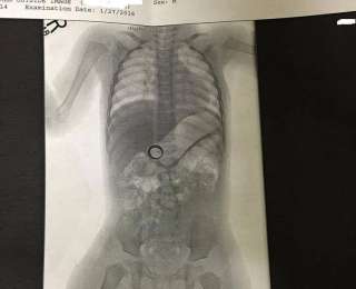 Хоть это выглядит довольно жутко, но кольцо не причинило малышу никакого вреда. В итоге, кольцо безболезненно покинуло организм малыша естественным образом